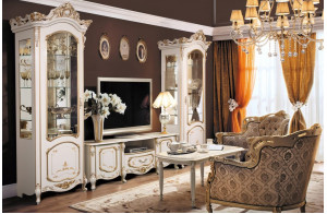 Гостиная считается главной комнатой в квартире и доме. Именно в гостиной мы принимаем своих друзей и родственников, отмечаем веселые праздники, проводим тихие вечера со своей семьей. Поэтому дизайну интерьера гостиной часто уделяют основное внимание - ведь это "лицо" Вашего дома. Гостиные от производителя Слониммебель в классическом стиле выглядят уютно и респектабельно, они призывают устроиться по удобней и расслабиться в приятной компании надежных друзей. Купить недорого модульную гостиную, стенку, или ТВ-тумбу не составит труда просмотрев этот раздел магазина.