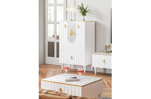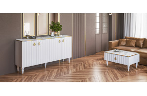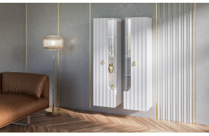 Коллекция мебели Лоренсо – это изысканный дизайн, подчеркнутый золотой металлической линией на изящной утончённой столешнице. Дизайнерские резные ножки из дерева придают коллекции легкость, а инновационное матовое покрытие от итальянских производителей будто приглашает дотронуться до бархатистой волны фасада и ощутить тепло прикосновения. Необычные подвесные шкафы идеально смотрятся вместе, глядя друг на друга прозрачными боковыми витринами, задавая тон всему интерьеру. С мебелью Лоренсо вы окунетесь в атмосферу престижного загородного клуба, где все устроено для вашего комфорта и спокойствия. Мебель Лоренсо – это роскошный фон для вашей жизни.