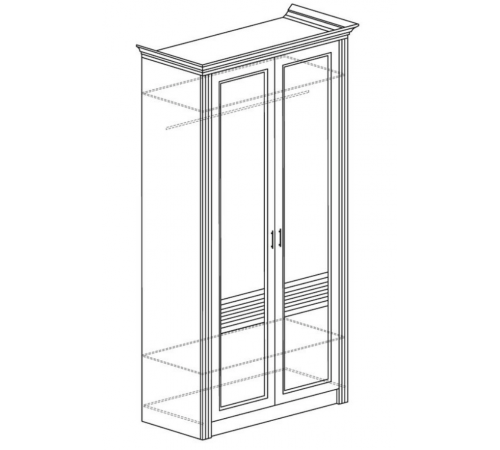 Купить двухдверный шкаф для одежды из серии Орлеан (1235х2283х563мм) в цвете ясень светлый.  Глубокий и вместительный по своим габаритам шкаф наполнен двумя полками и большой штангой,что позволит использовать его для хранения одежды и вещей по максимуму.  Патинированные дверцы, рефленая фрезеровка фасадов  и  ручки под состаренный металл придают особый шарм серии "Орлеан"