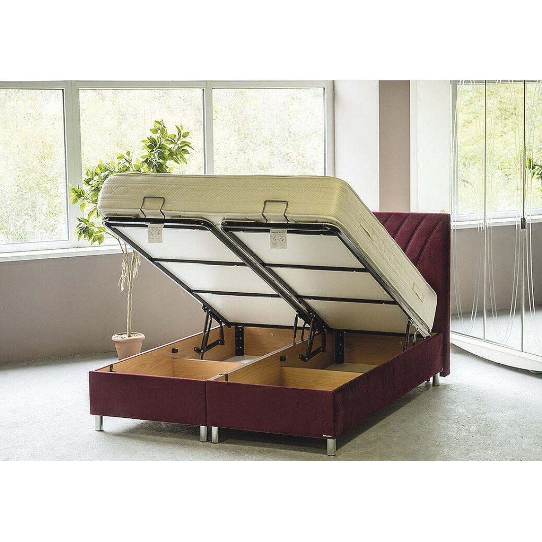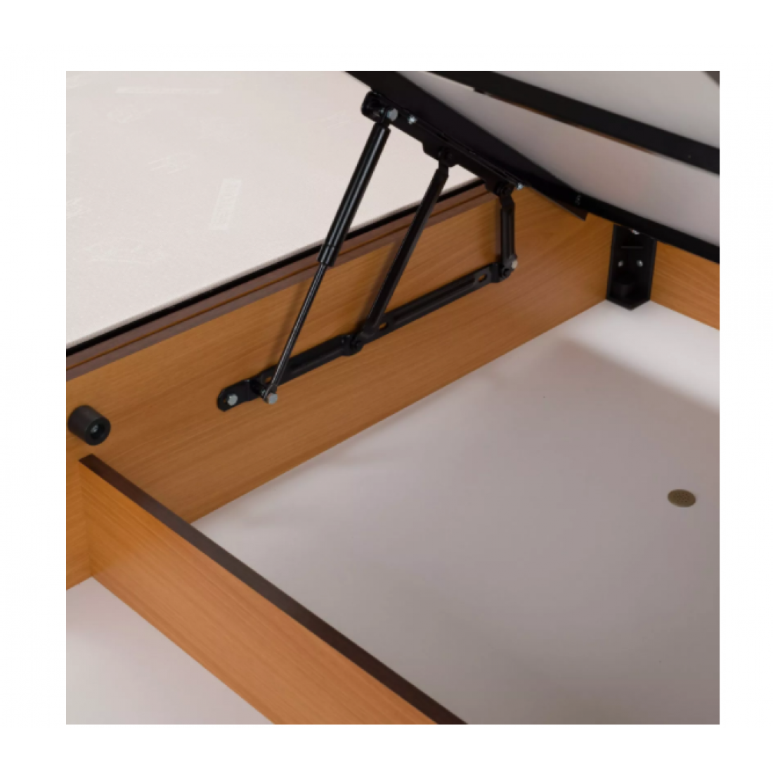 Элегантная база с обивкой из мебельной ткани. Данная модель идет в комплекте с вкладным, жестким кроватным основанием, оснащенным двухсторонним газоподъемным механизмом с двухсторонним фиксатором. Подъемный механизм, которым оснащено основание кровати, добавляет комфорта в использовании модели, облегчая доступ к вместительному ящику для белья.
