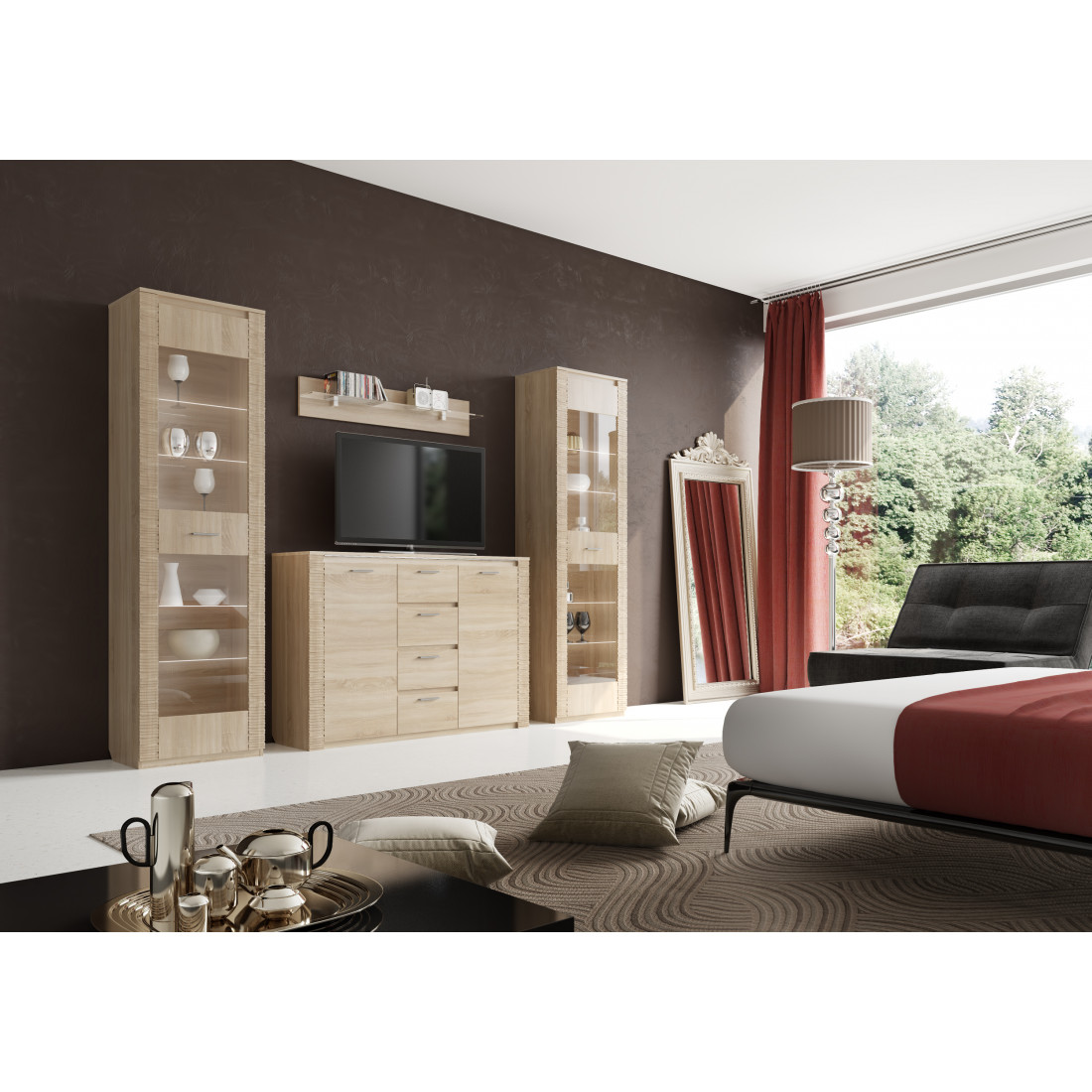 В коллекции Элана от фабрики МебельГрад дизайнеры сочетают цвета Дуб сонома и Ель карпатскую.