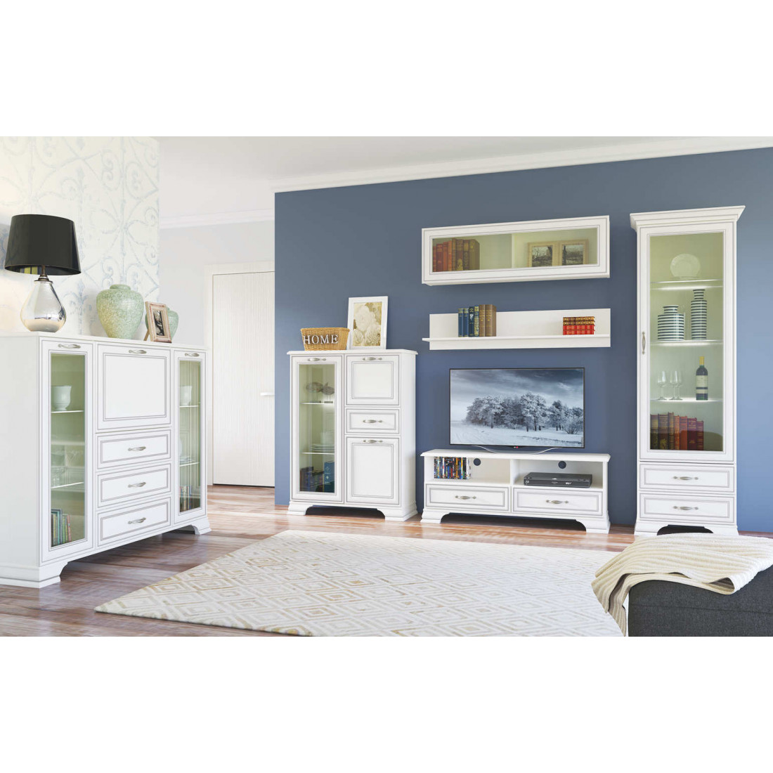 Гостиная Тиффани - это классика, которая всегда остается модной и стильной. Сочетание светлого оттенка с древесной структурой, нежных фасадов, обрамленных изящными планками с патиной и качественных металлических ручек создадут атмосферу тепла и уюта, а возможность использования подсветки делает эту коллекцию особенно привлекательной. Основное достоинство TIFFANY - эстетическая функциональность, которая роскошно дополнит различный по назначению интерьер.