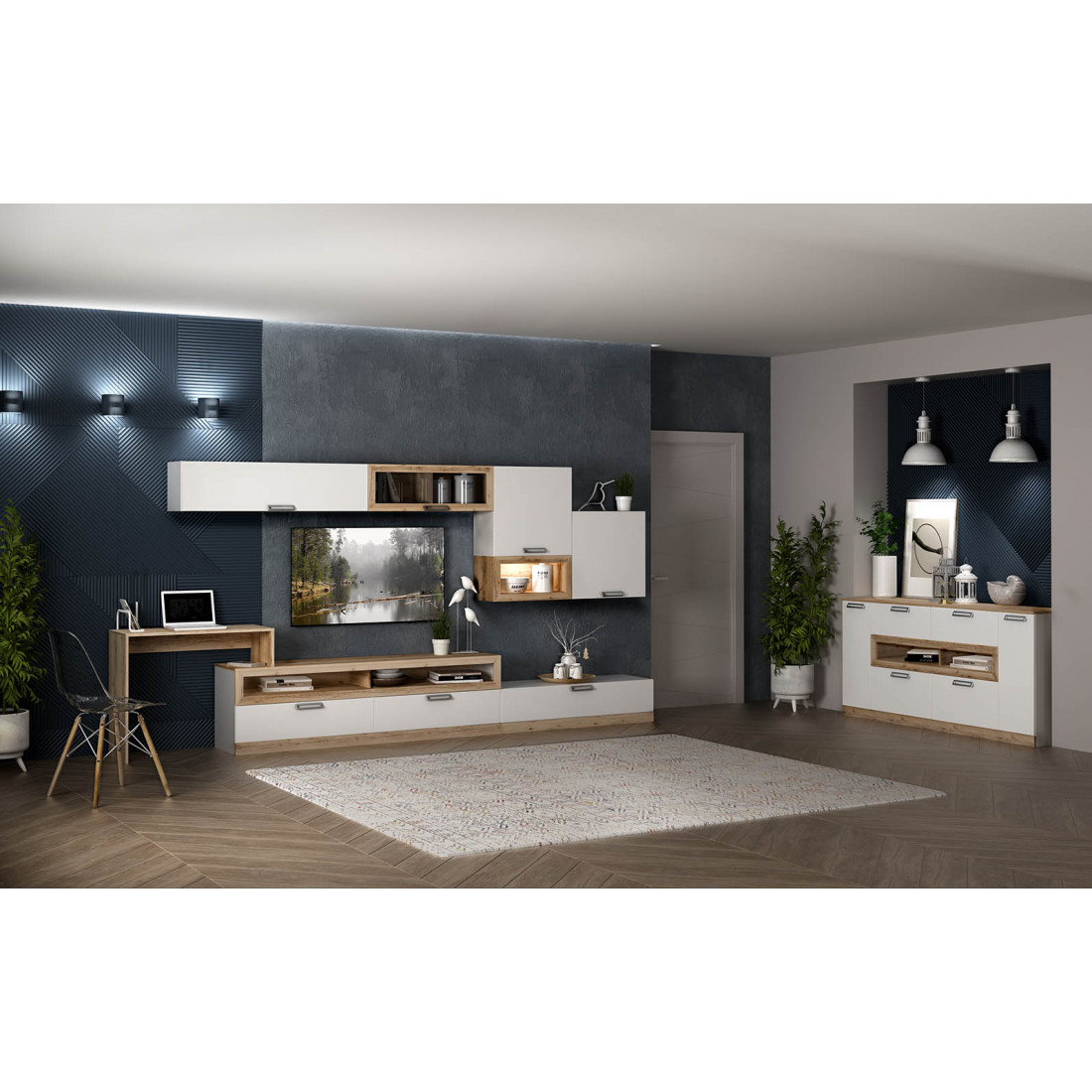 Фасады: МДФ, декоры – белый супермат софт-тач, дуб делано