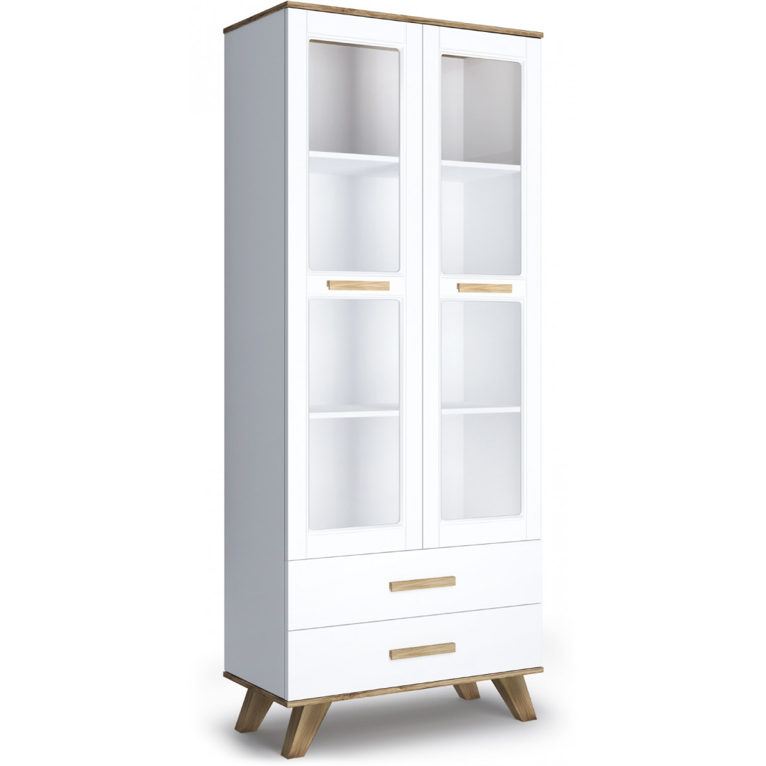 Шкаф-витрина 450 Вега Скандинавия (глянец, белый + дуб каньон)