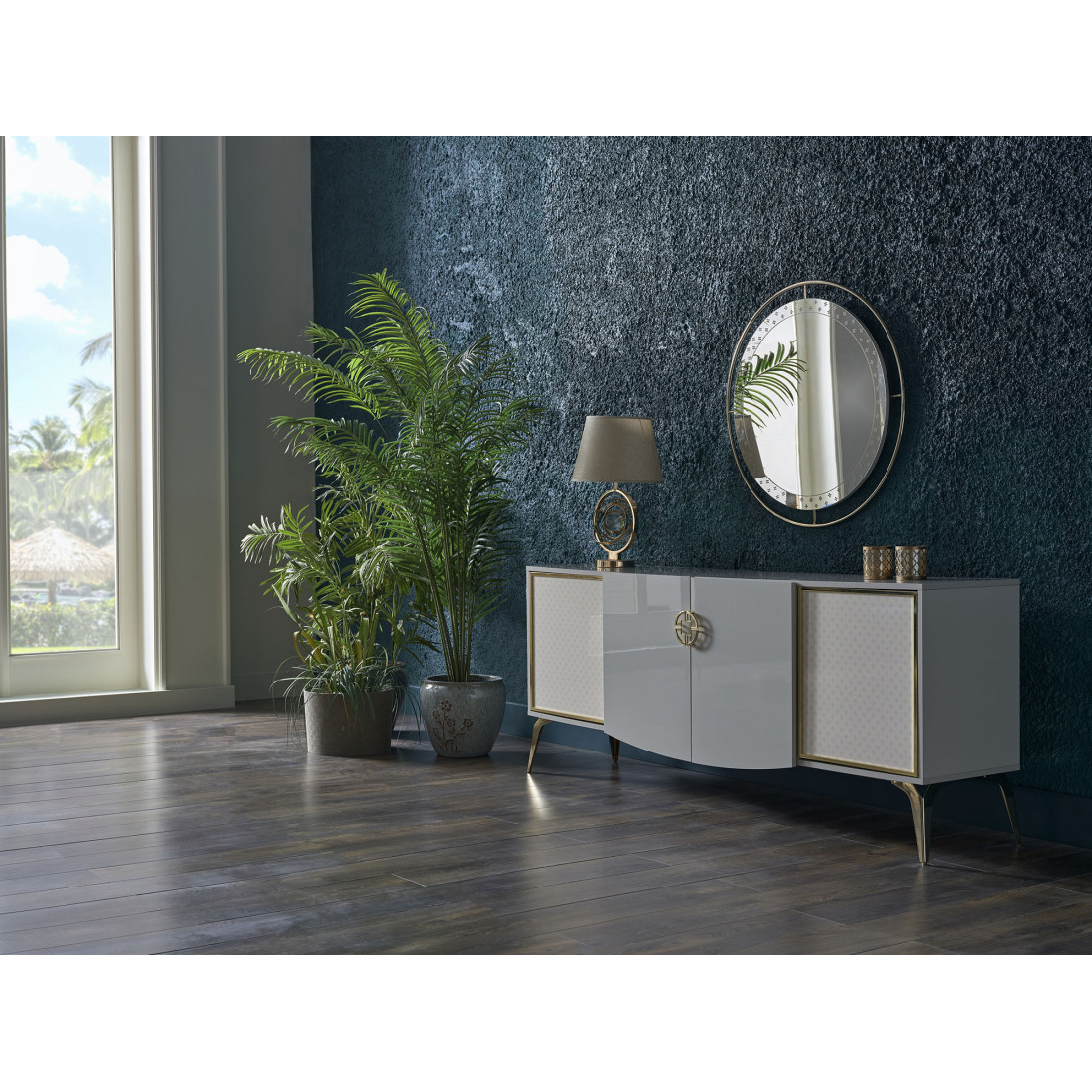 Узоры на стекле буфета, отражающюют стиль АРТ-ДЕКО.