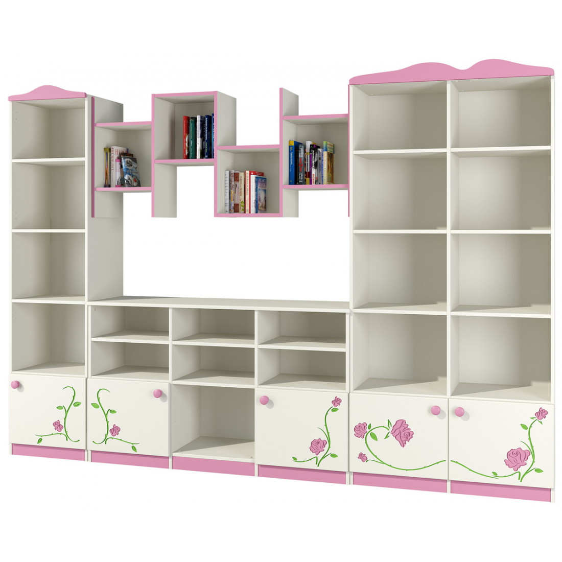 Модульная детская стенка для книг и игрушек с полками и ящиками Розалия
