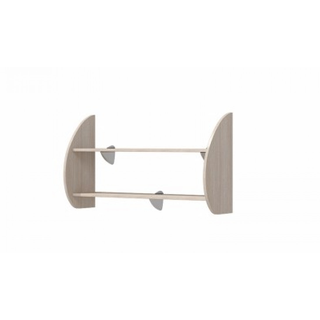Настенная полка в детскую П2 серии Василиса от Мебель-Неман, исполненная в кремовом оттенке с имитацией под крашеное дерево внесет дополнительный функционал и эстетику в интерьер. Купить навесную полку округлой формы и двухуровневой конструкции можно под цветы, книги, а также для расположения под навесным ЖК или плазменным телевизором.