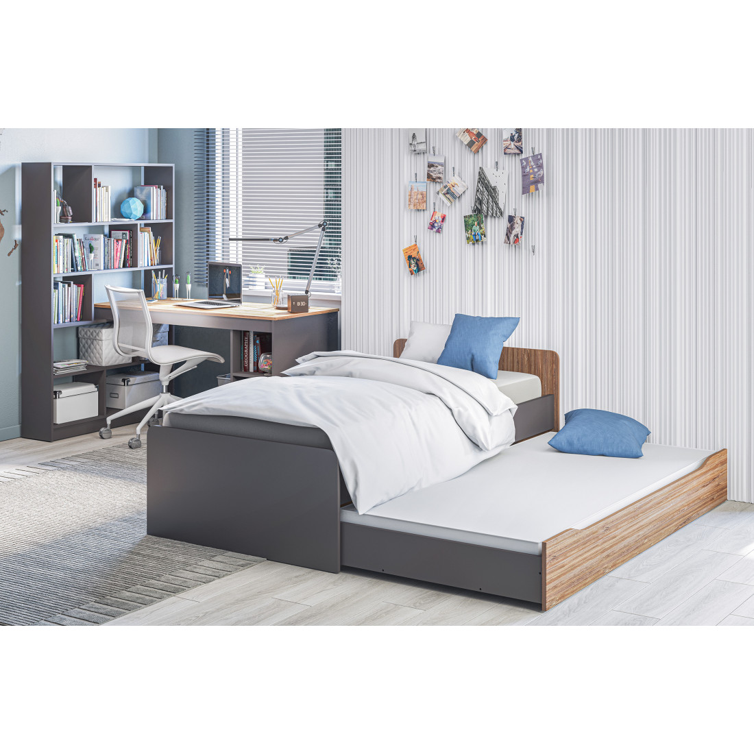 Кровать МН-135-29 с одним большим выкатным ящиком, который можно использовать как дополнительное спальное место либо ящик для хранения. Размер основного спального места 200*90,
