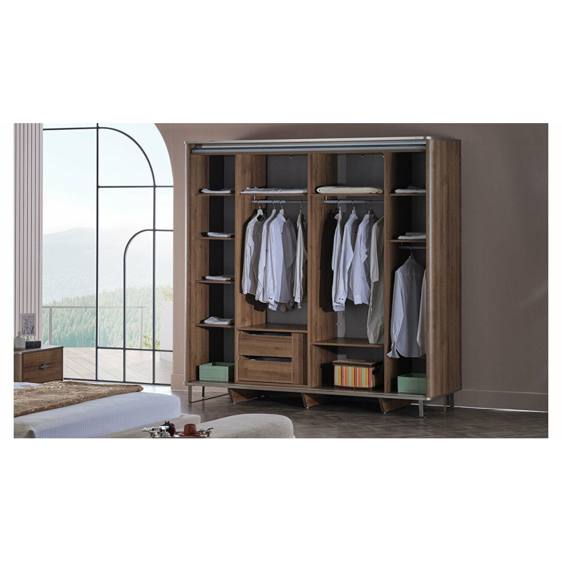с полками,со штангой,каленое стеклоМатериал корпуса