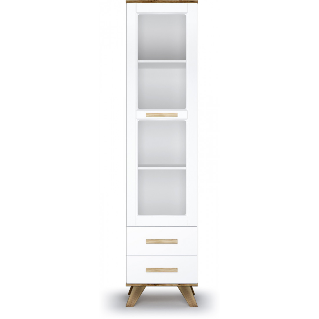 Узкая витрина «Вега Скандинавия» это геометрические формы и сочетание оттенков камня, песка, древесины, белого цвета.
