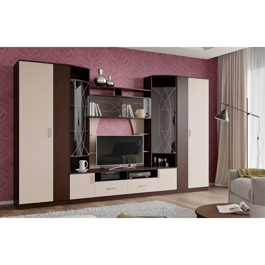 Безупречный внешний вид и отличная вместимость гостиной «Лороза» привлекают внимание все большего числа покупателей. И это не случайно. Благодаря плавным линиям эта гостиная без проблем впишется в любой интерьер, а платяной и бельевой шкафы – просто находка для любого владельца. Наличие ящиков самого различного назначение придутся по вкусу всем членам семьи. Тонированные стекла с пескоструйным рисунком в гостиной «Лороза» великолепно смотрятся и при дневном, и при вечернем освещении и не требуют особого ухода, а гармоничное цветовое сочетание "Дуб Молочный/Венге Мали", никогда не выйдет из моды.